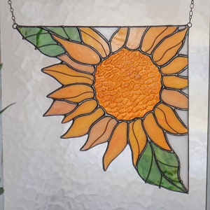 Corner Panel Yellow Sunflower Suncatcher. Stain Glass Fall Gift Home House Decor Window Wall Hangings Decoration Boho Art