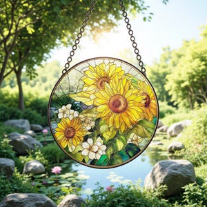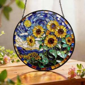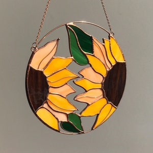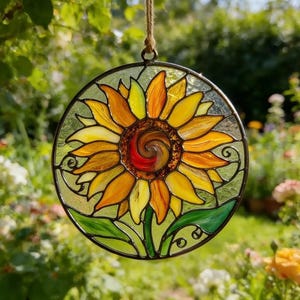 Sunflower Glass Suncatcher, Round Stained Glass Window Art, Colorful Home Decor Gift Idea, garden lover gift