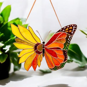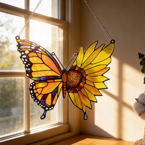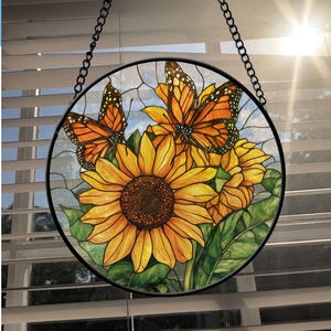 Stained Glass Sunflower Suncatcher: Monarch Butterfly Window Hanging