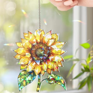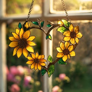 Sunflower Stained Glass Suncatcher, Sunflower Window Hanging Garden Decor, Christmas Mother’s Day, Valentine’s Day Ornaments Festival Gift