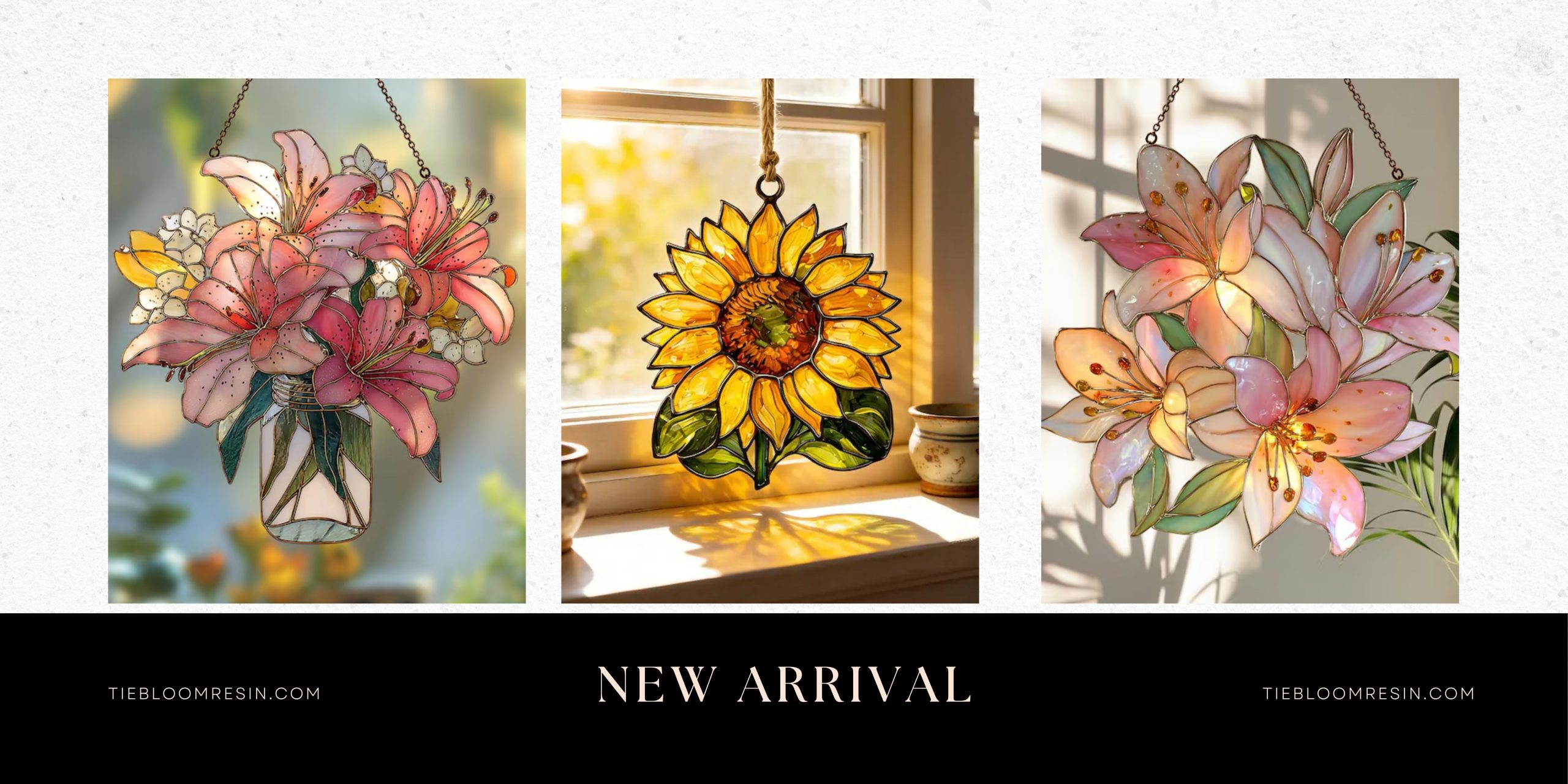 Sunflowers Window Stained Glass, Sunflowers Suncatcher, Flower Garden Gift Home Decor, Birthday Gift, Window Hanging, Indoor Decor
