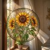 Sunflower Stained Glass Suncatcher, Round Floral Window Hanging